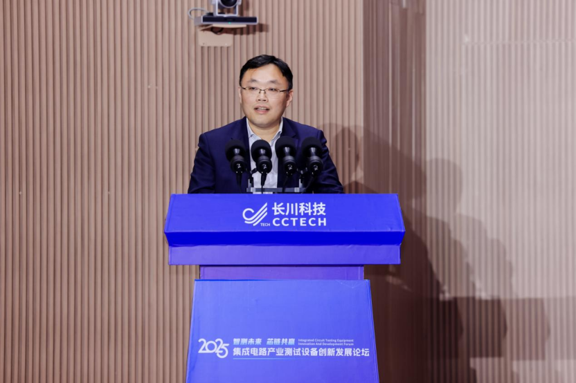 在主題演講環(huán)節(jié),長川科技董事長趙軼對(duì)全體嘉賓的到來表示熱烈歡迎與衷心感謝,并以《測試賦能芯創(chuàng)未來:測試助力芯片產(chǎn)業(yè)發(fā)展》為題發(fā)表演講。他指出,隨著芯片先進(jìn)工藝、先進(jìn)封裝等技術(shù)的持續(xù)演進(jìn)與突破,芯片測試正面臨高密度、大功率、高集成度、高智能等挑戰(zhàn)。基于這些挑戰(zhàn),他系統(tǒng)性展示了長川科技面向數(shù)字、電源管理、存儲(chǔ)、顯示驅(qū)動(dòng)等各類型芯片測試的系統(tǒng)解決方案,并通過公司產(chǎn)品路線圖清晰地展現(xiàn)公司應(yīng)對(duì)未來測試需求的技術(shù)布局與前瞻規(guī)劃。